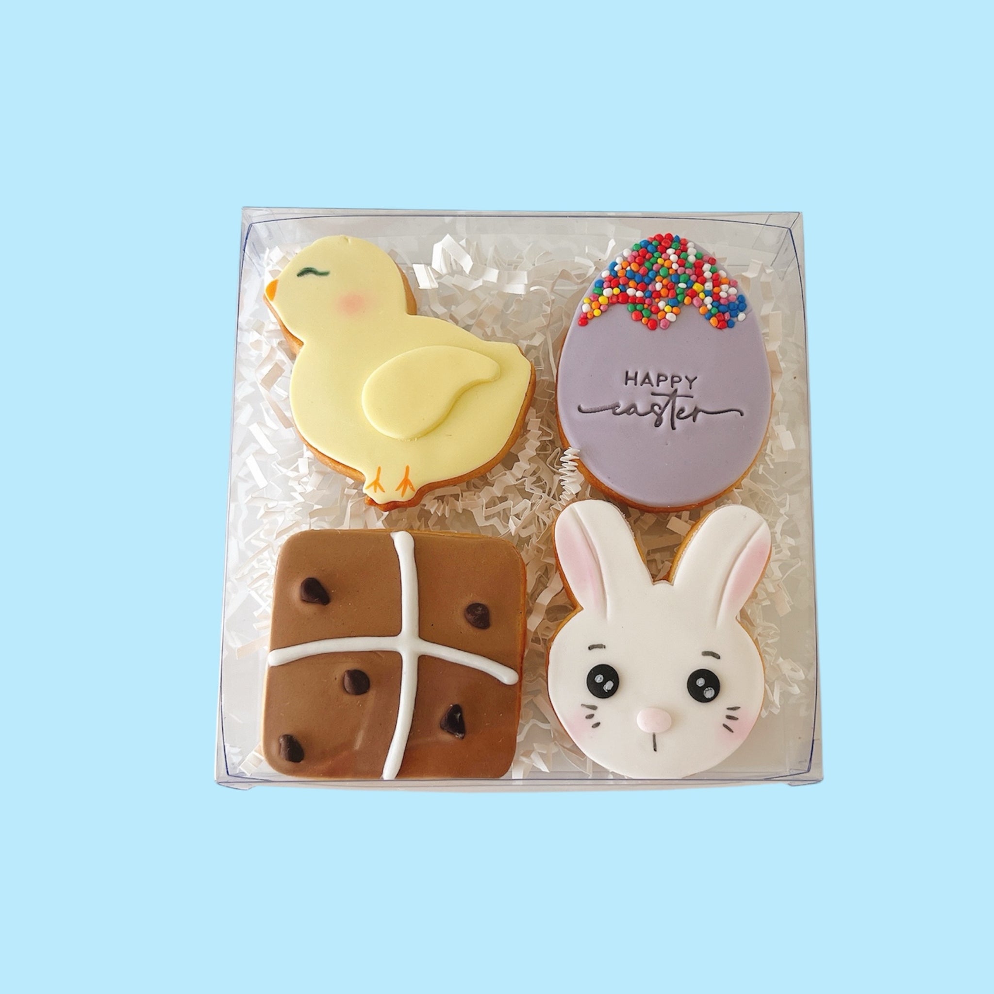 Yellow Chick, Lilac Egg, Hot Cross Bun, Bunny face